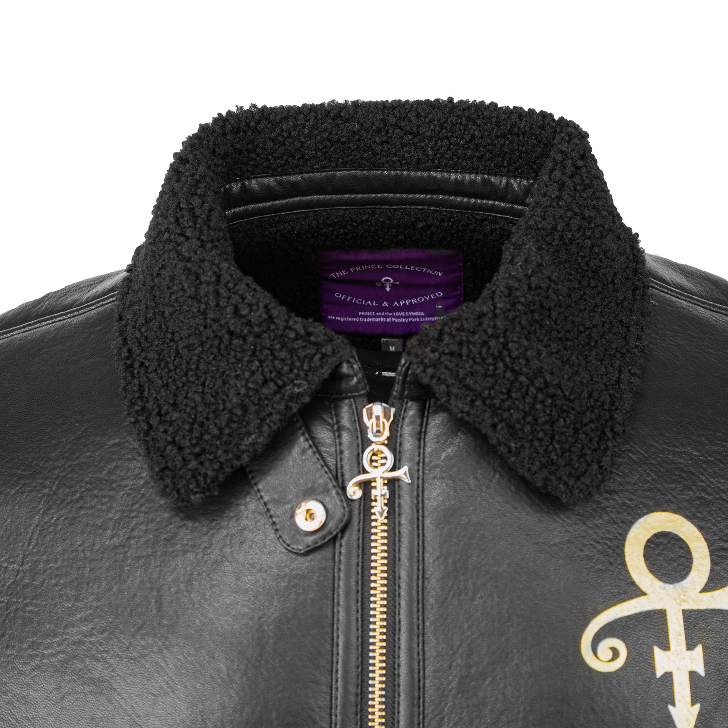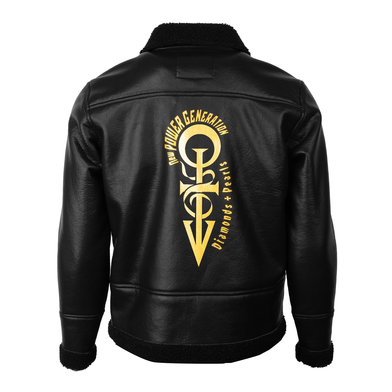 Diamonds And Pearls Love Symbol Sherpa Faux Leather Jacket (Black)