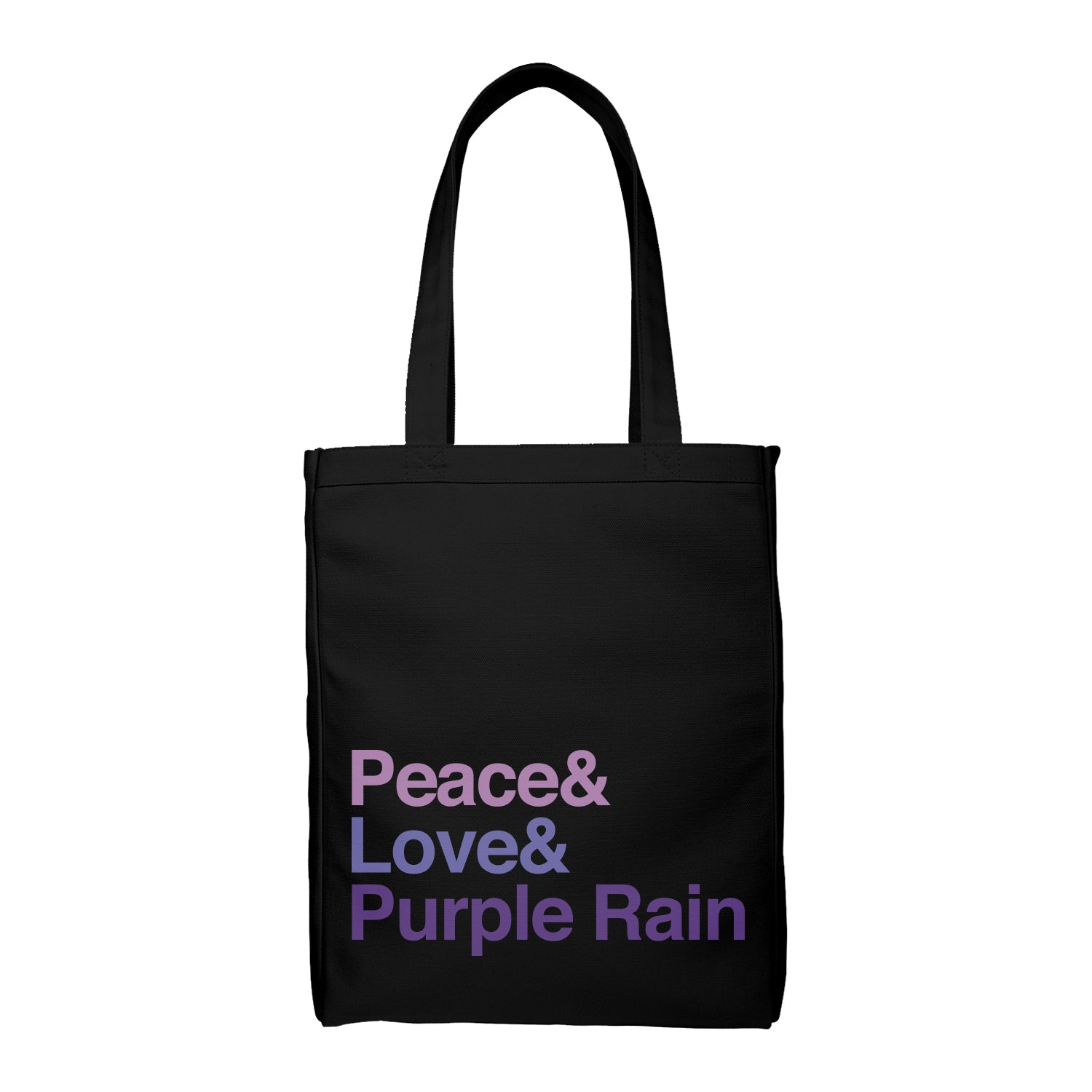 I received my tote bag of love peace, purple rain. I was amazed how sturdy it was, and the wording and colors are beautiful. I will have to get another on, just to keep all my Prince jewelry together. Prince brought love and peace in his music, god rest his soul. But he is smiling down on us!