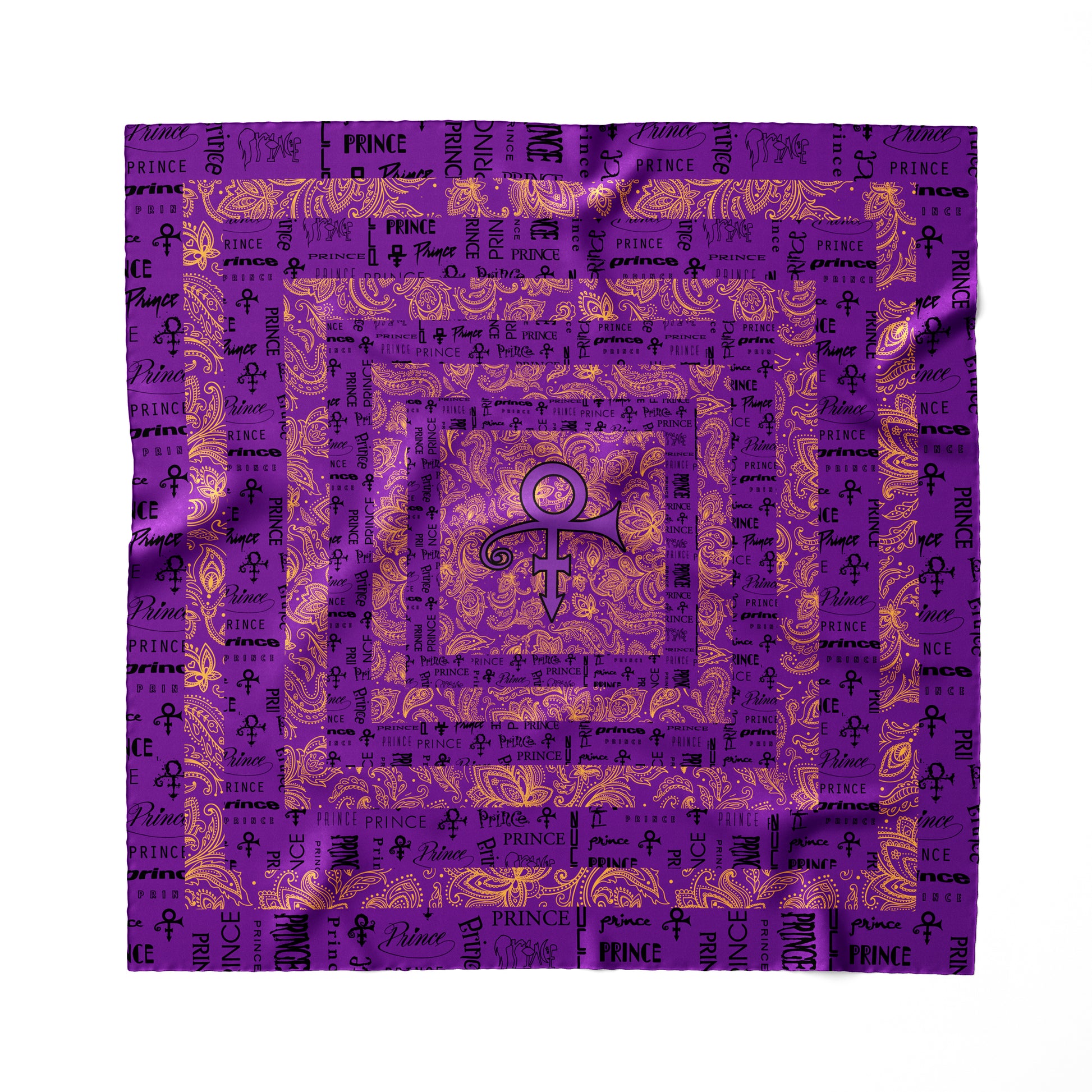 This collectible Prince logo pattern/Prince symbol scarf is 100% Silk and measures 42" x 42"