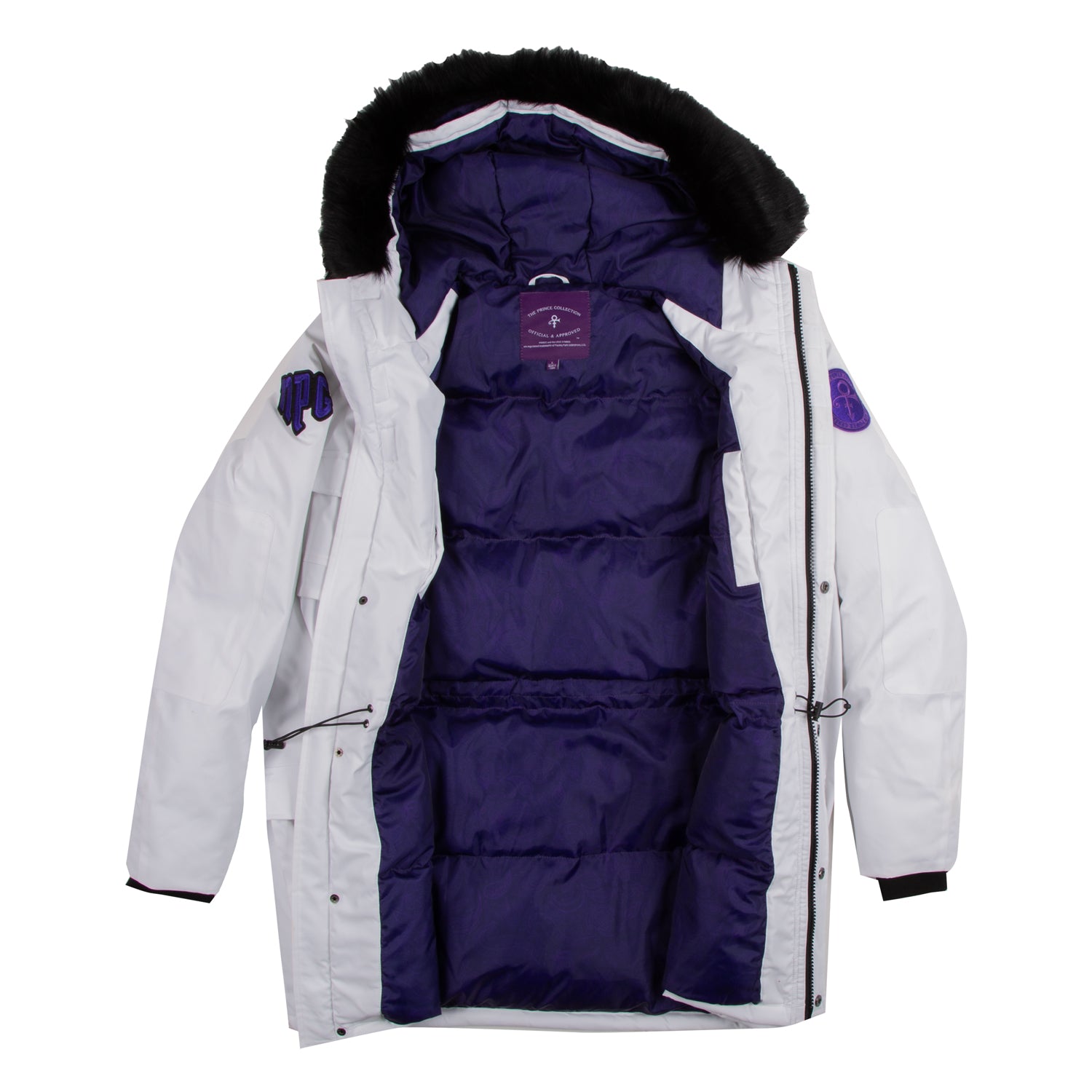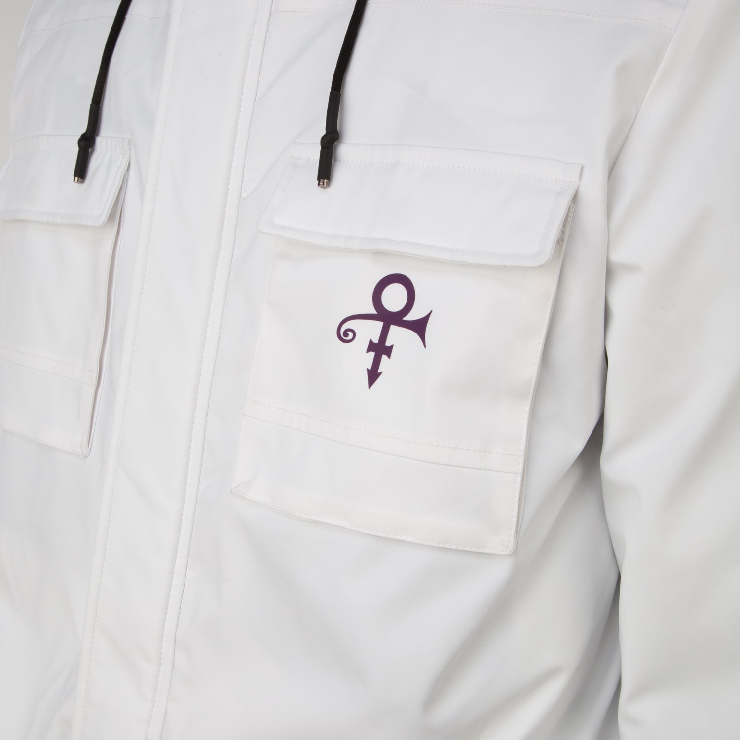 - Covered full front zipper with Prince Symbol zipper pull