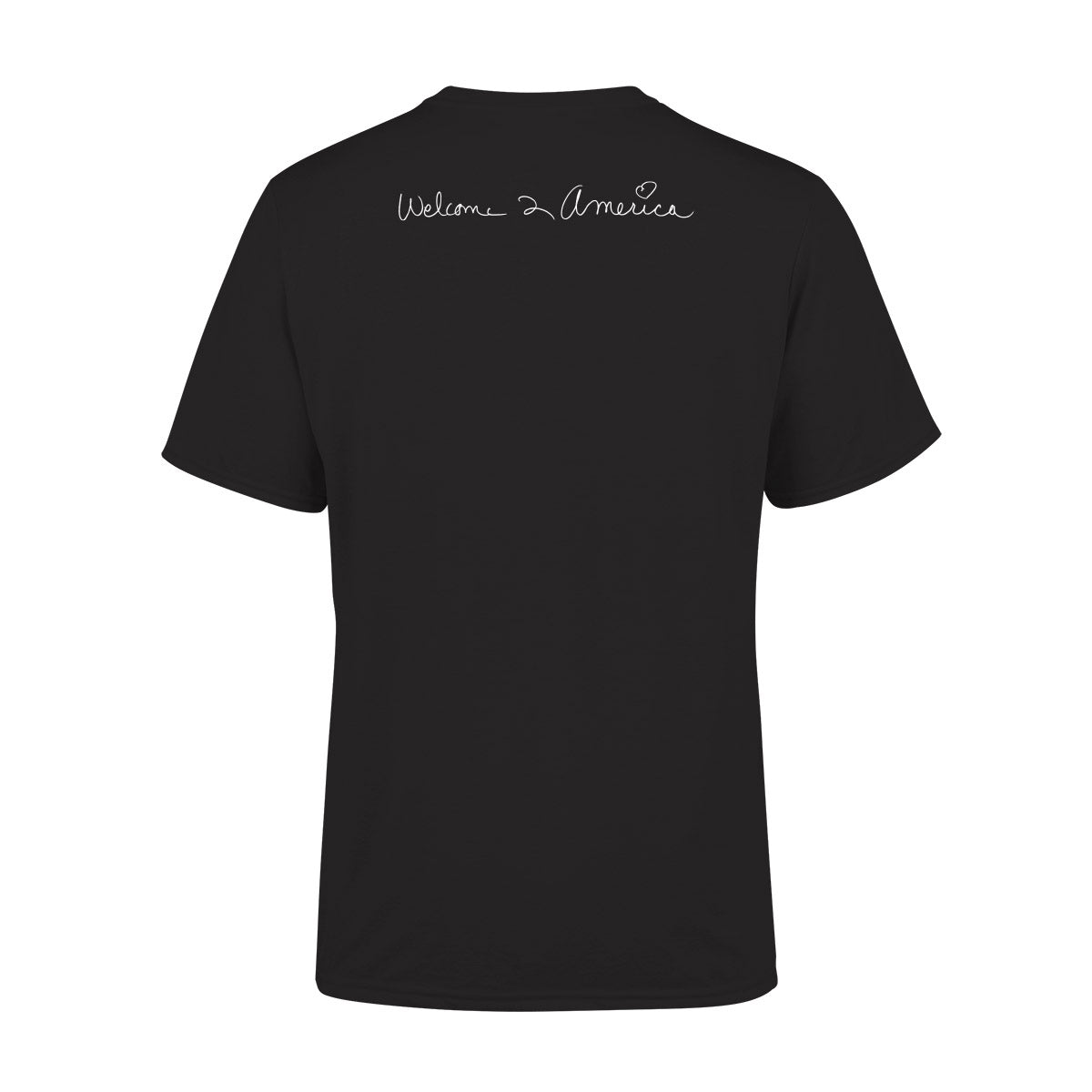 I love this T-Shirt the material is more of a Poly material than cotton. It"s very soft and the understated photo add a nice touch!
