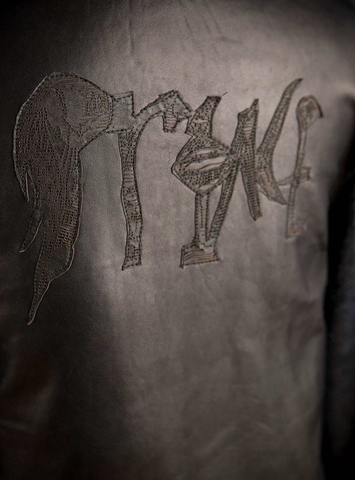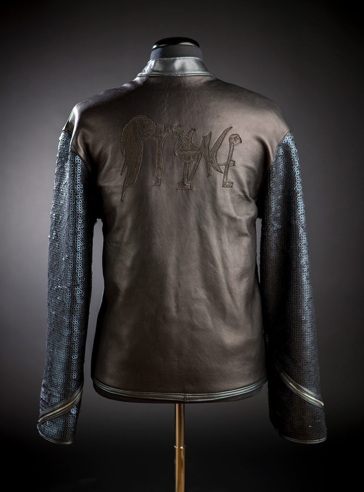 "This lean bomber jacket employs leather and sequins originally used for pieces we made for Prince & 3RDEYEGIRL. It is a supple futuristic play on a classic jacket. Cathy & Lori